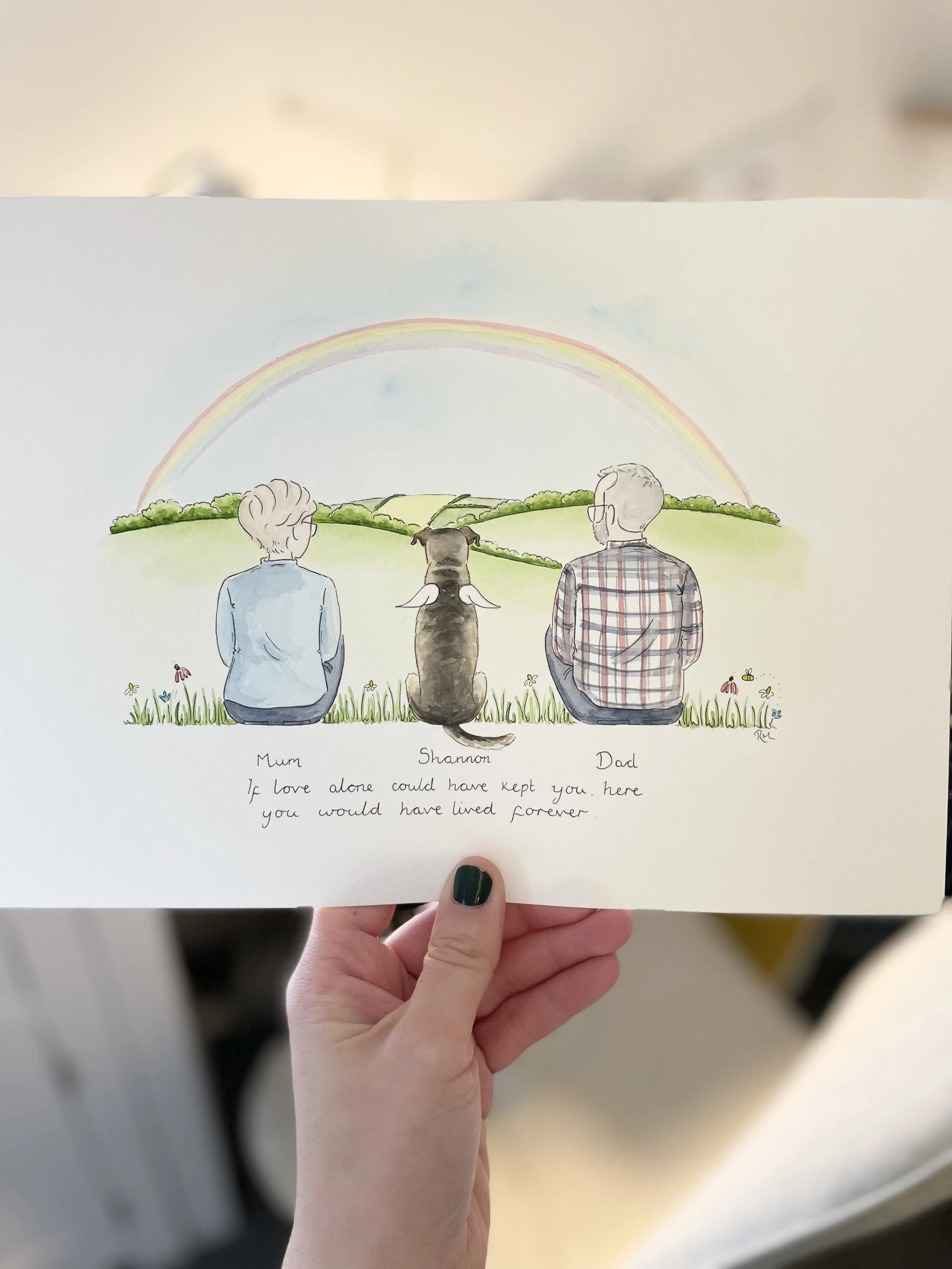 Wedding themed paintings capturing special moments from a picture or creating an image including the couples precious furry family members